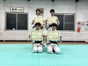 道院からのお知らせ 昇段試験に4名合格いたしました 2025年11月04日(火曜日) 2025年10月13日(月)に行田グリーンアリーナで行われました昇段試験に、少拳士二段2名、中拳士三段2名合格いたしました。 ・少拳士二段 貝田 一翔拳士 小橋川 蒼太拳士 ・中拳士三段 新井 一矢拳士 関根 幸志拳士 « 2025年度全国大会(神奈川)に出場します 2025年 稽古納め・忘年会 »